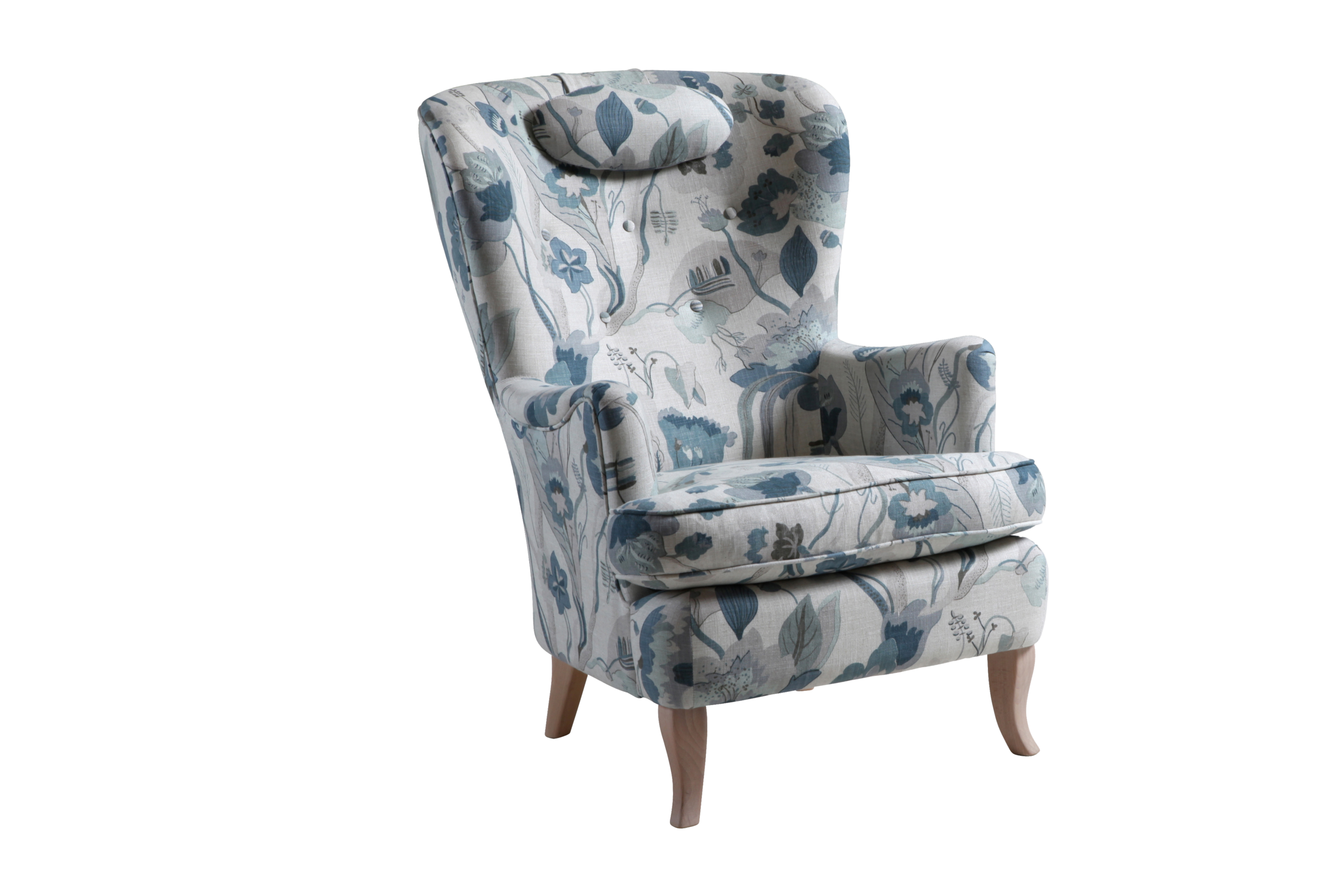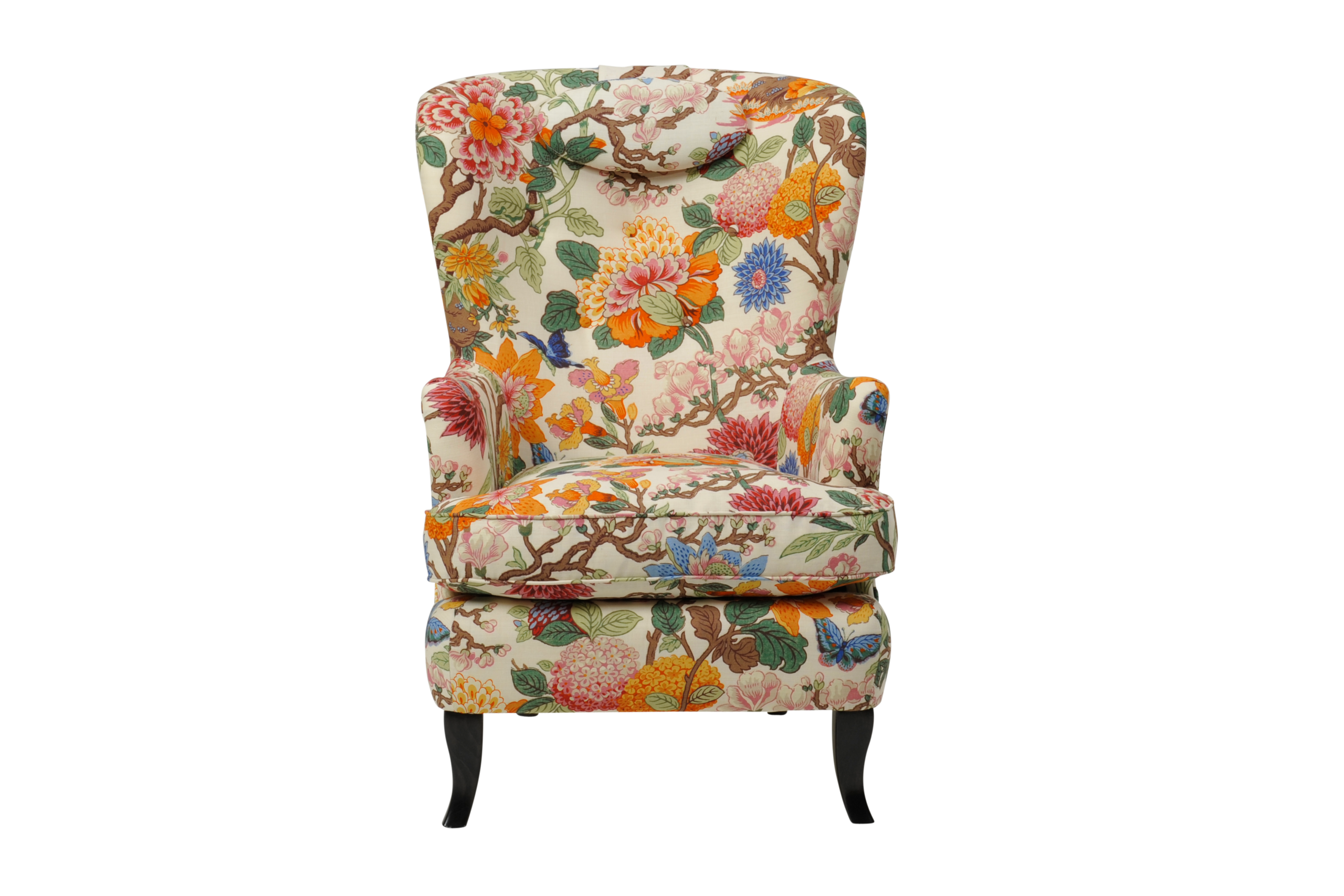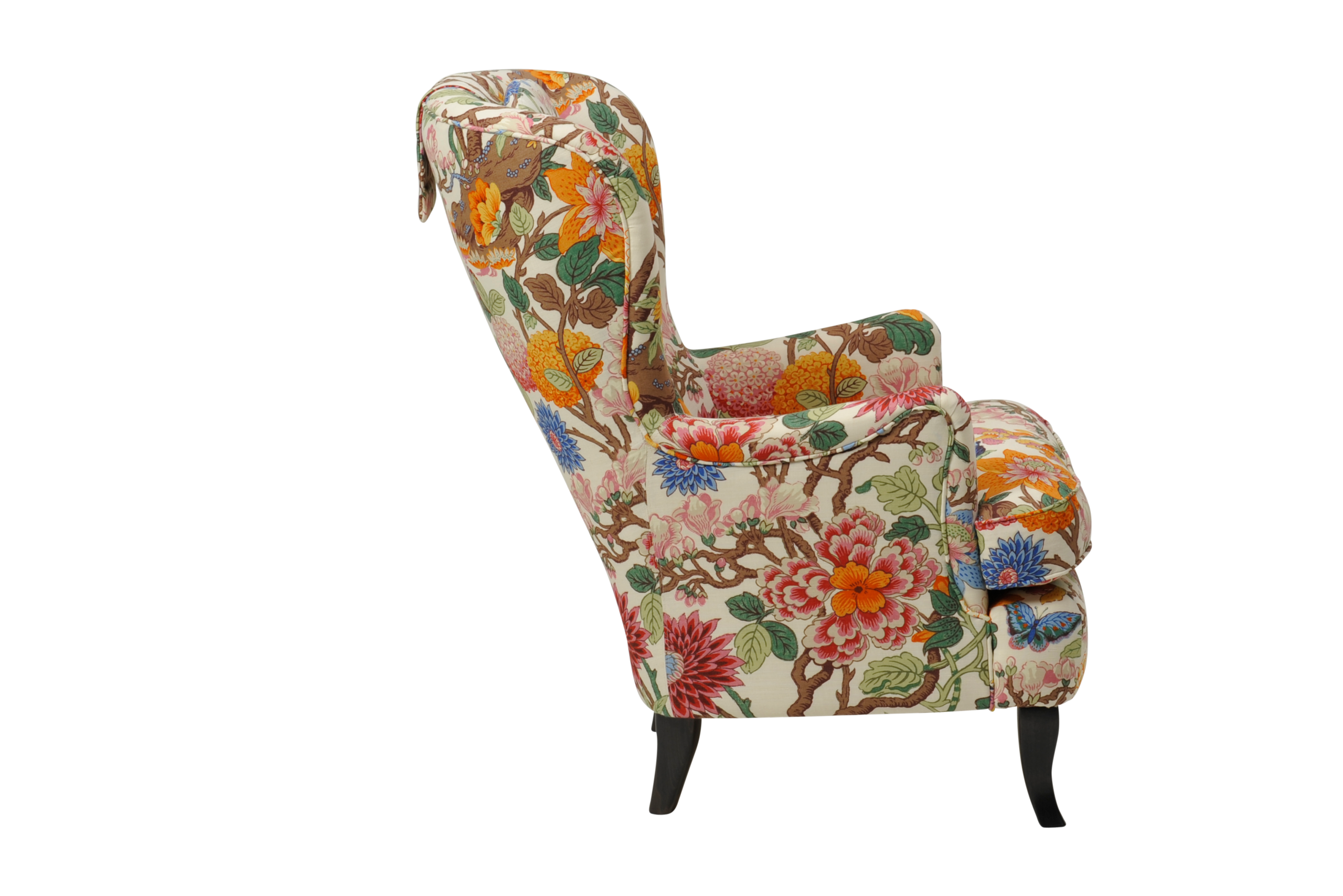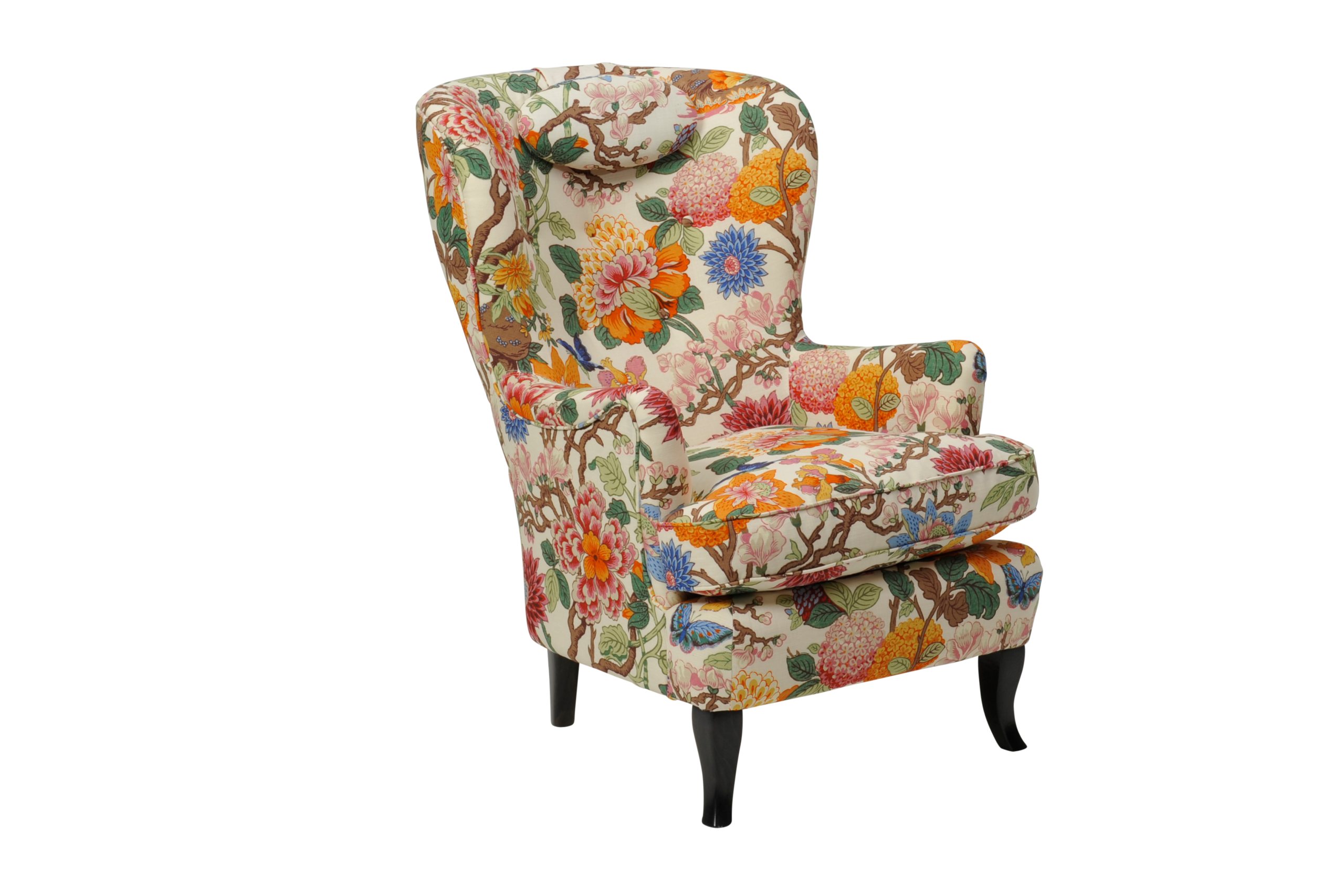 Med sina vackra rokokoinspirerade former är fåtöljen Carina en riktig klassiker. Lika skön och snygg att titta på som att sitta i. Tillverkad för hand i de småländska skogarna.