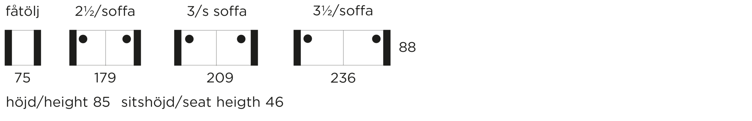 ⦁ = prydnadskuddar ingår enl. standard