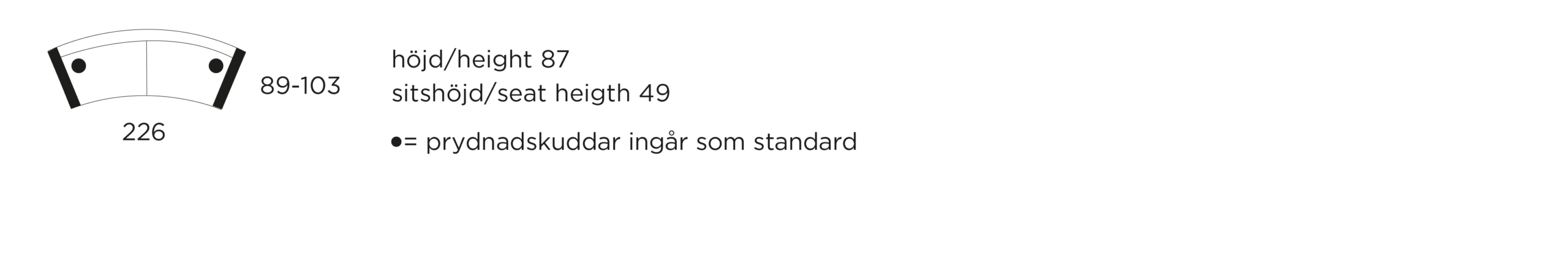 Med sin svängda form men ändå raka linjer blir Electra Svängd en pjäs i ditt rum som utstrålar kontroll och självkänsla. Detta utan att på något sätt tumma på vår grundtanke om att snygg design ska gå hand i hand med god komfort. Soffan Electra Svängd har en stomme i massivt trä som kombineras med sitt- och ryggplymåer i kallskum, polyeter och sjöfågelfjäder. Allt i perfekt symbios för att skapa en möbel som håller länge och gör dig nöjd. Du väljer själv vilket tyg som passar till just din Electra Svängd.