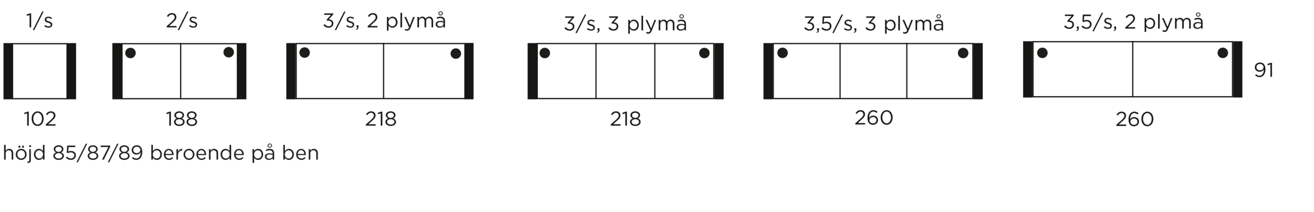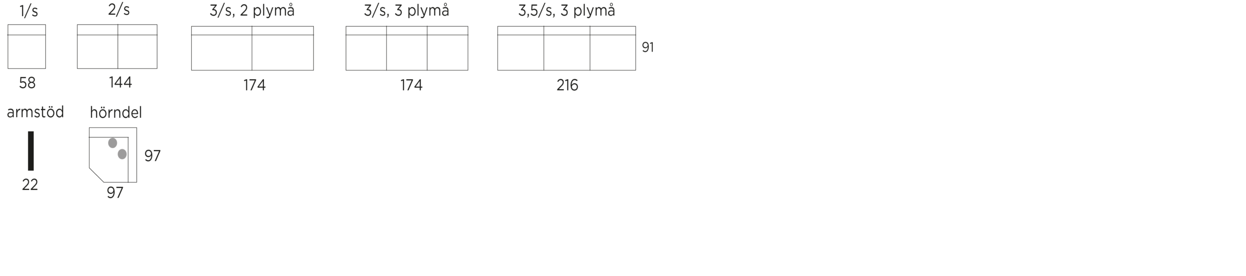 ⦁ = prydnadskuddar ingår enl. standard